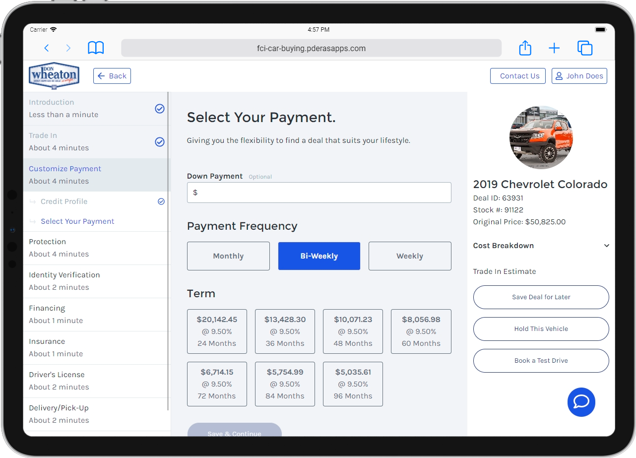 Save time in the dealership and improve CSI. FC Journey allows your customers to complete as much on the purchase experience online, but easily pick up where they left off in store saving time, and improving your customer’s experience.